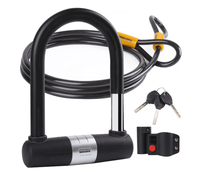 El candado en U para bicicleta BIGLUFU con cable, candados en U para bicicletas de alta resistencia, grillete de 16 mm y cable de 10 mm x 1,8 m con soporte de montaje para bicicleta de montaña, bicicleta eléctrica, bicicleta plegable y motocicleta.