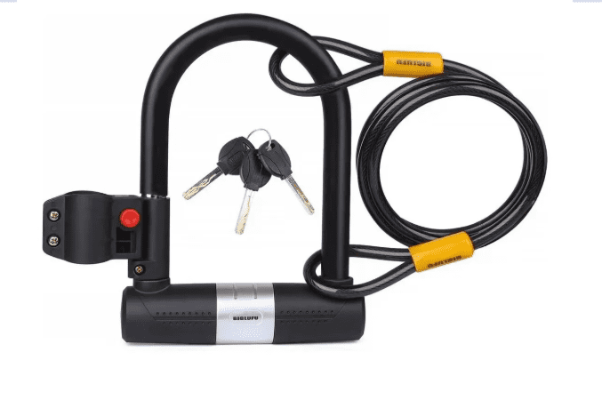 El candado para bicicleta viene con un cable de acero de 5 pies y 11 pulgadas (1800 mm) recubierto con una cubierta de PVC. El diámetro total del cable es de 0,39 pulgadas (10 mm). Este cable flexible de doble bucle proporcionará a tu bicicleta una mayor flexibilidad de bloqueo y una mejor protección.